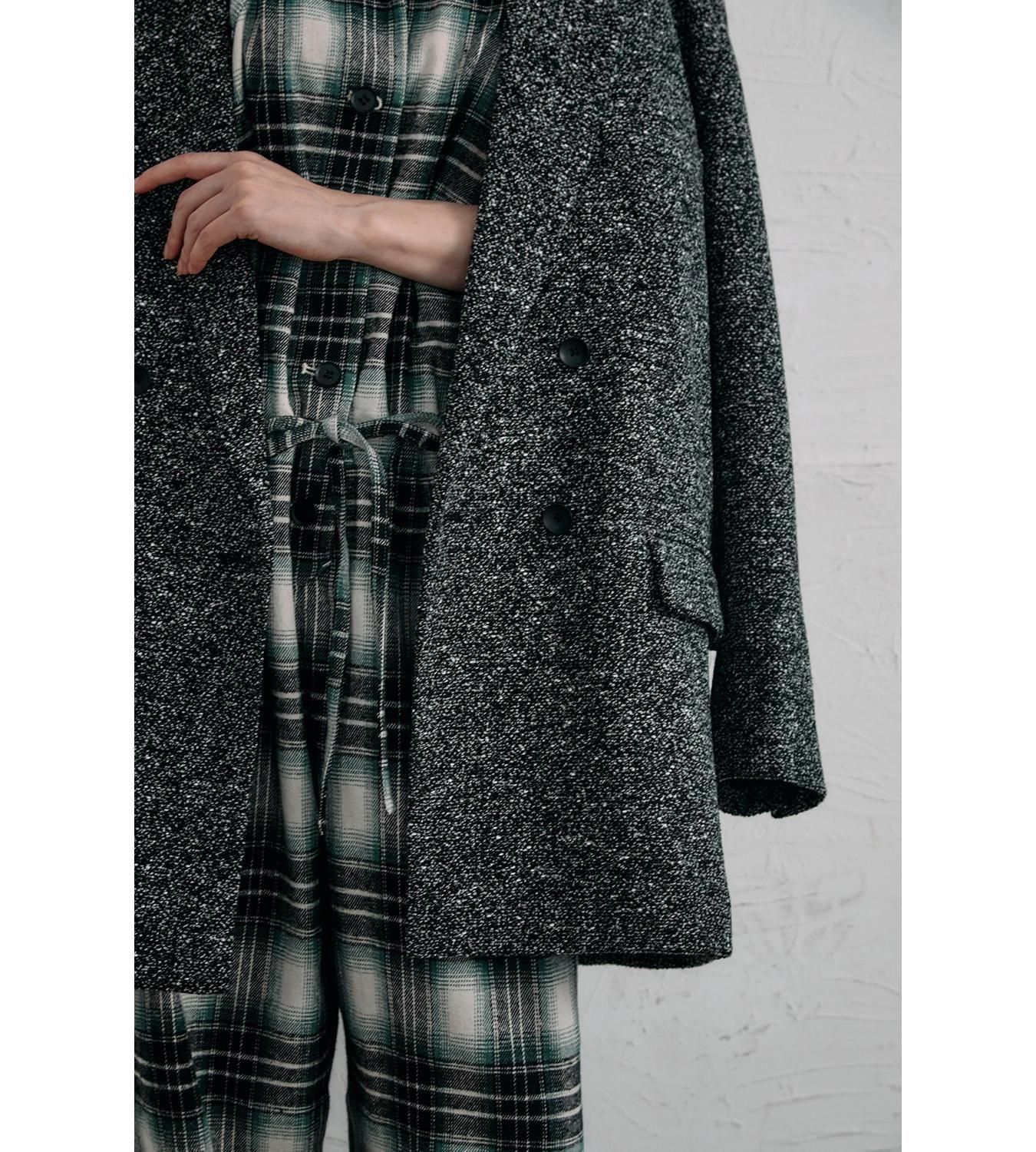 【予約商品】 ヘリンボーンシャギーコート グレー